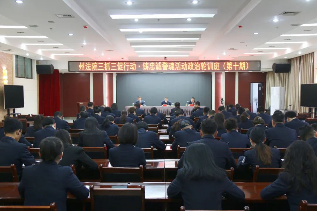 为深入学习贯彻党的二十大精神和习近平法治思想,贯彻落实习近平总书记关于加强政法队伍建设的重要指示精神,深入推进“七院建设”,着力锻造过硬队伍,突出抓好理论武装。5月8日,州法院举办“三抓三促行动·铸忠诚警魂活动”第十期政治轮训班。在家党组成员及全体干警参加辅导。